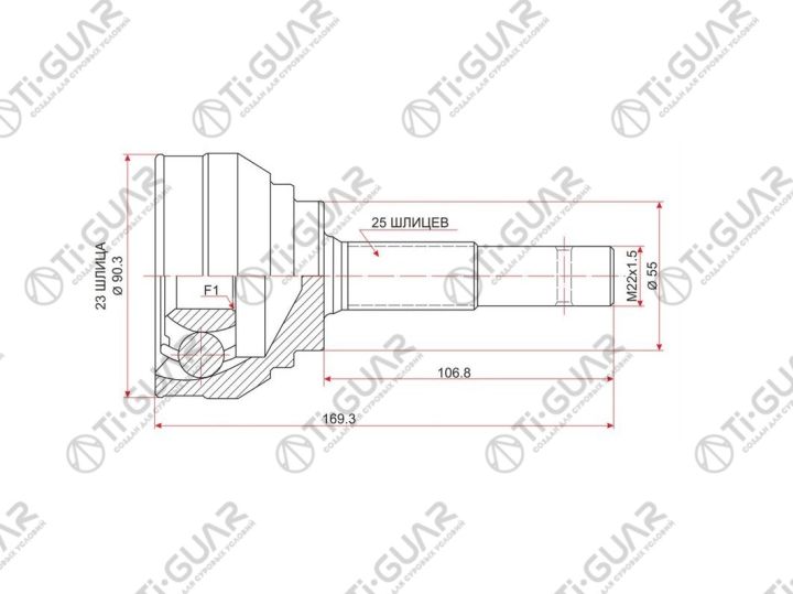 ШРУС наружный /передний левый /правый /TI-GUAR для Nissan AD California Sunny Pulsar 1990-1996 Y10 B13 B14 N14 N15; 23*55*25; L=107.1mm; TG-7417; (NI-017 NI-017A42 0210017)