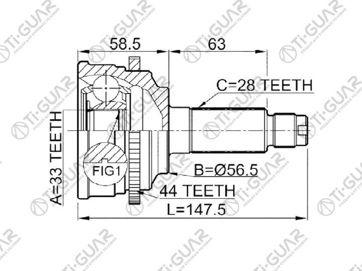 ШРУС наружный /правый /левый /TI-GUAR для Mazda Atenza 6 2002- GG/GY 2.0L; 33*56.5*28; TG-6854Z44; (MA-054A44) GD402550XC GD402550XA GD402560XA
